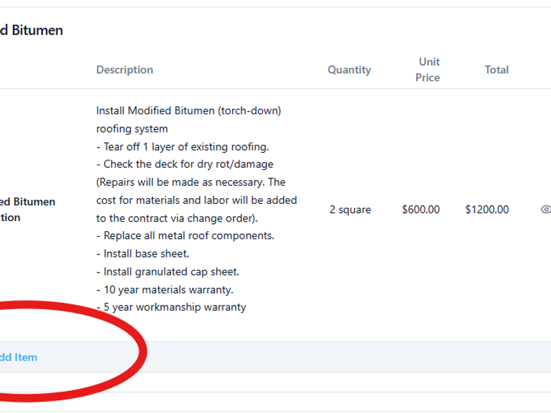 - Make sure the pricing and scope of work descriptions are correct. You can edit line items by clicking on the pencil icon next to them.