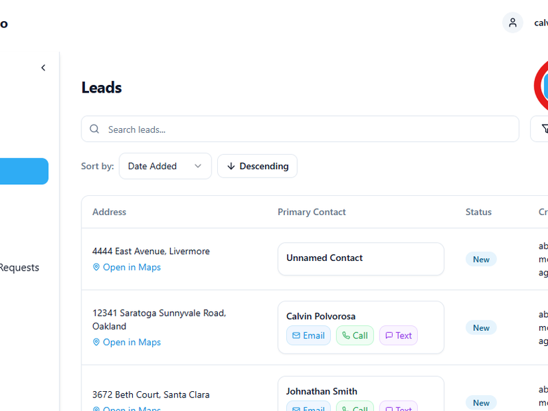 - Fill in the lead details such as the property address, and customer contact info.