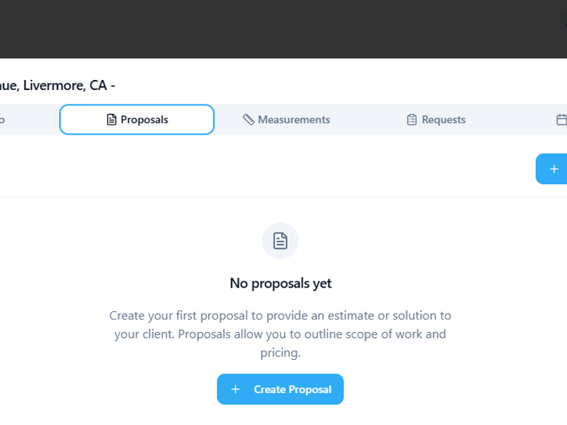 - After creating a measurement, you are now able to create the proposal. Go to the Proposals tab on the lead, and click “Create Proposal.”